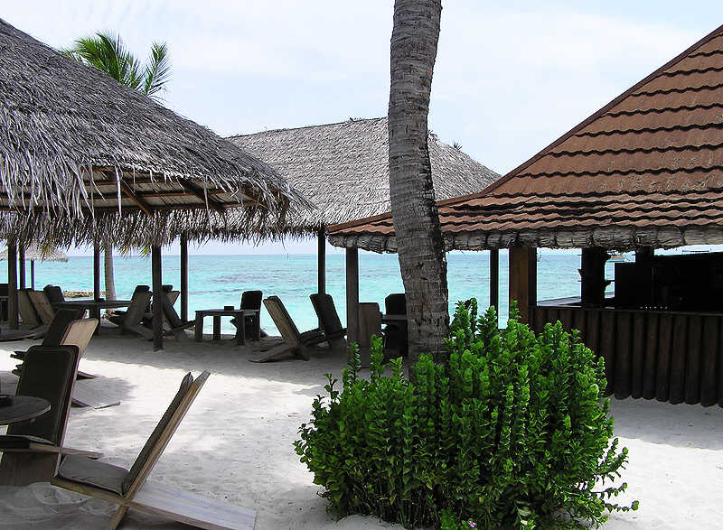 The (closed for lunch) Beach Bar next to Reception. Now in danger of slipping sideways into the sea.