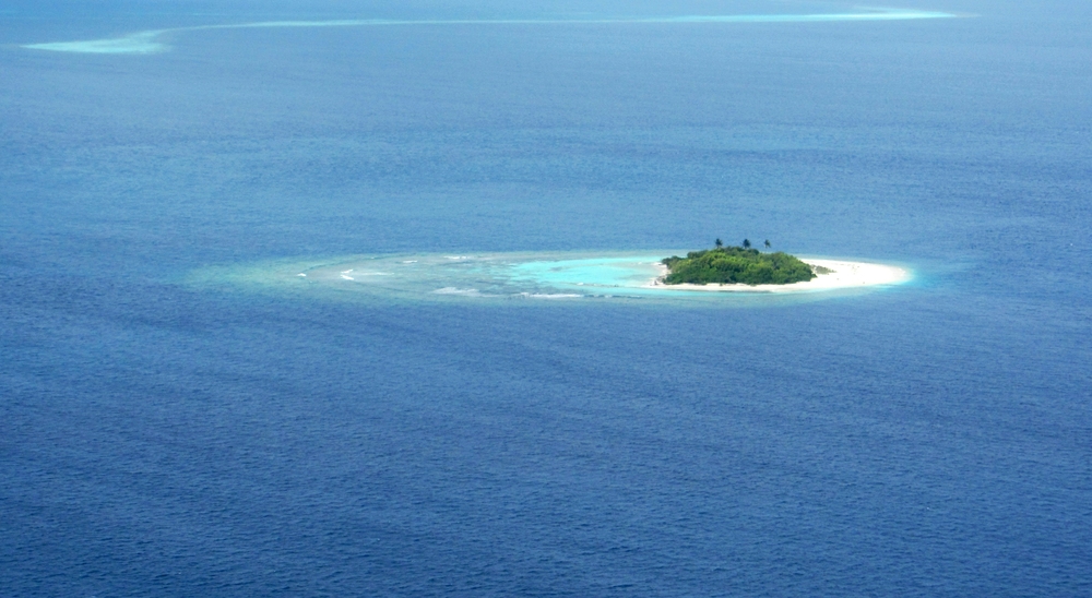 Thudufushi's sister island, Athuruga, from the seaplane.