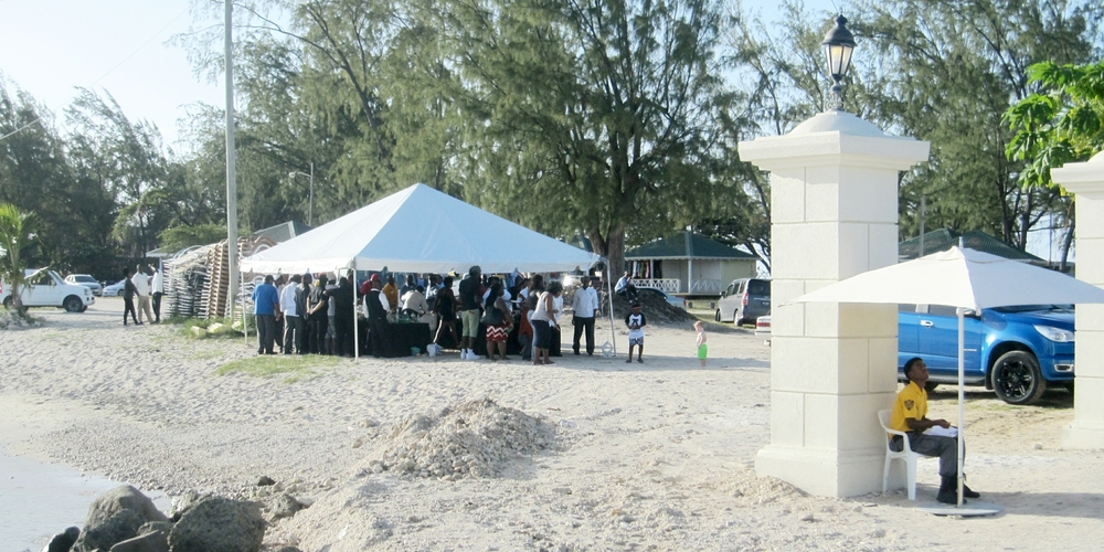 We discovered that, every week, Sandals lay on a staff party at 5pm in the public area between Sandals and Pigeon Island. They put up this marquee and provide food and drinks for their staff.